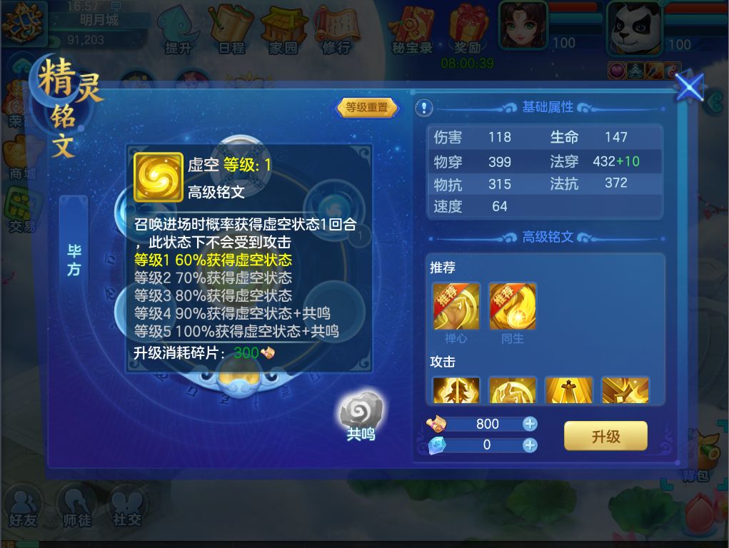 9)新增了铭文虚空,效果为佩戴该铭文的宠物召唤出场时概率当回合不会受到攻击(替换原壁垒铭文,已装备壁垒铭文将返还调整消耗);