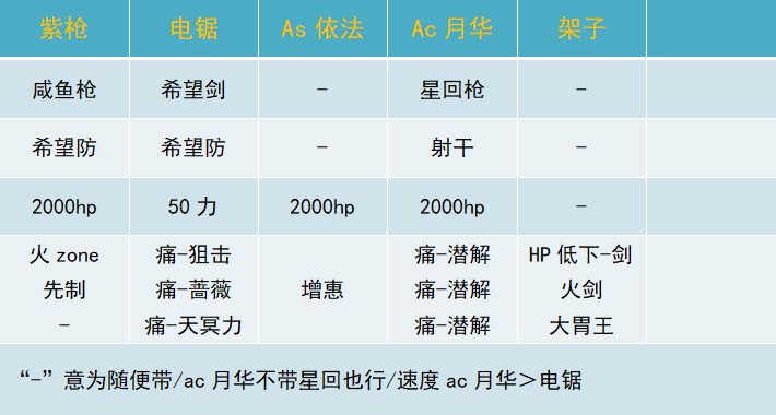 感觉有不少换汤打法:紫枪+电锯+ac月华+火锤/姐姐/公主