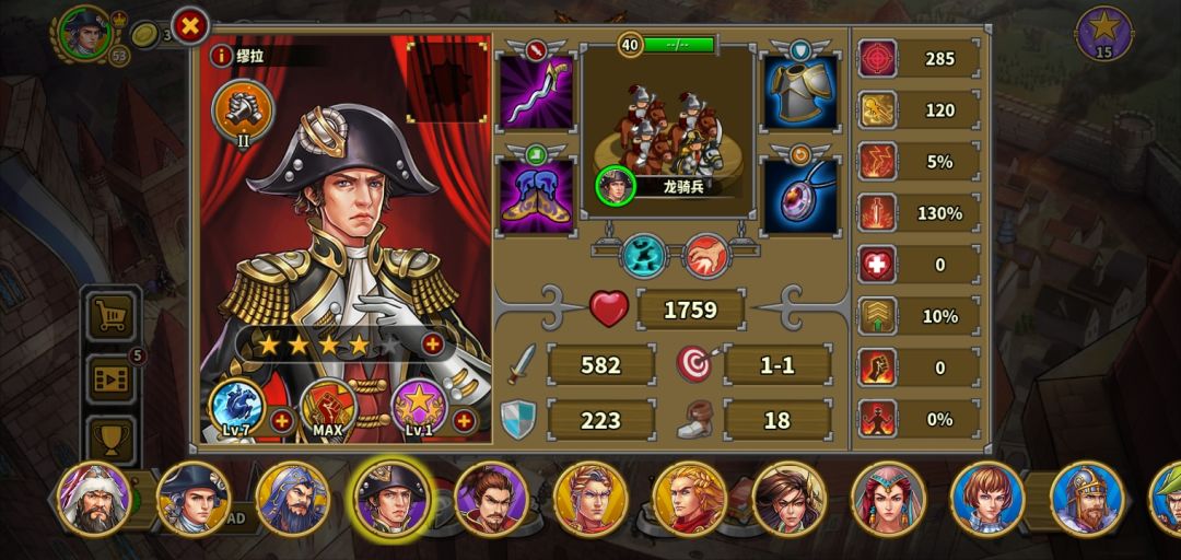 图片是主要阵容,勋章还不够升星。现在在犹豫是买纳尔逊还是培养章西女王还是给主力阵容升星。
