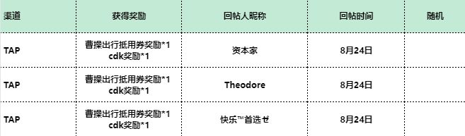 “畅行三国”奖:cdk奖励*1和曹操出行抵用券奖励*1