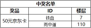 我们将在成功参与本次活动的回帖中,随机抽取2位精英,分别送出【50元京东卡*1】