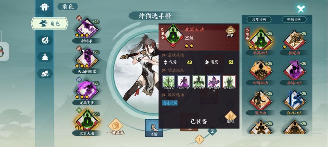 优点:紫色功法易获取,补足北冥流防御短板,而且打连,终配合可以抽3牌(也可以护甲爆发)