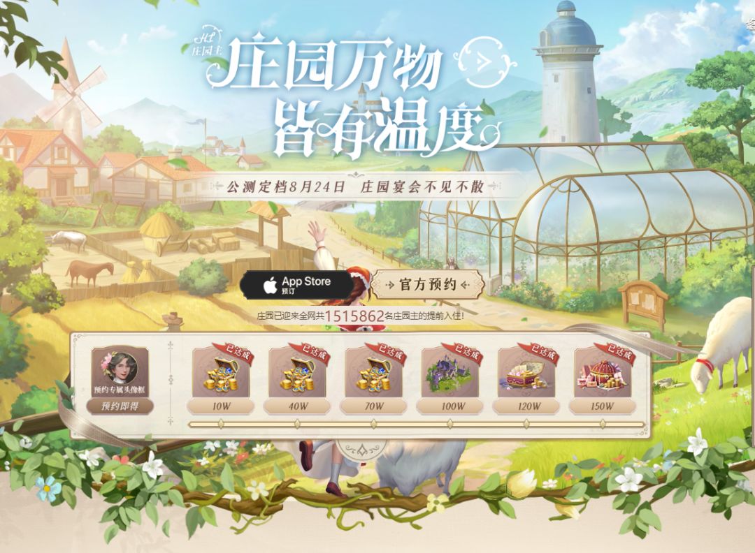 在庄园主们的热情支持下,预约数现已突破150万!全服普发多重奖励:10000金币、200钻石、