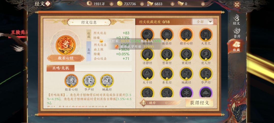 新版本出的经文系统,一点进去就看到了个稀罕玩意儿:除魔/卫道。这属性太少见了,我都忘了是啥效果,惯例点开人物属性详情看了下,好家伙,敢情是pve版的诛心/御心啊。