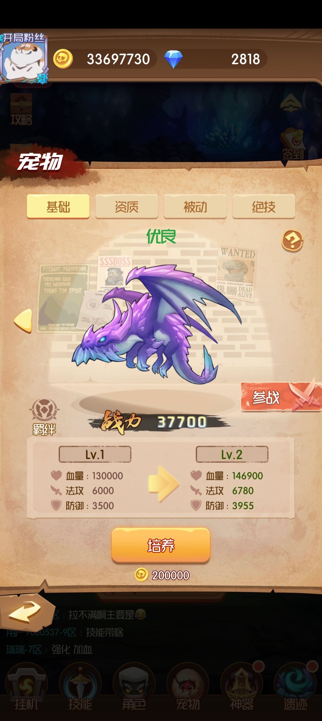 第三个800资质丹解锁蓝龙,攻击高,血量低,