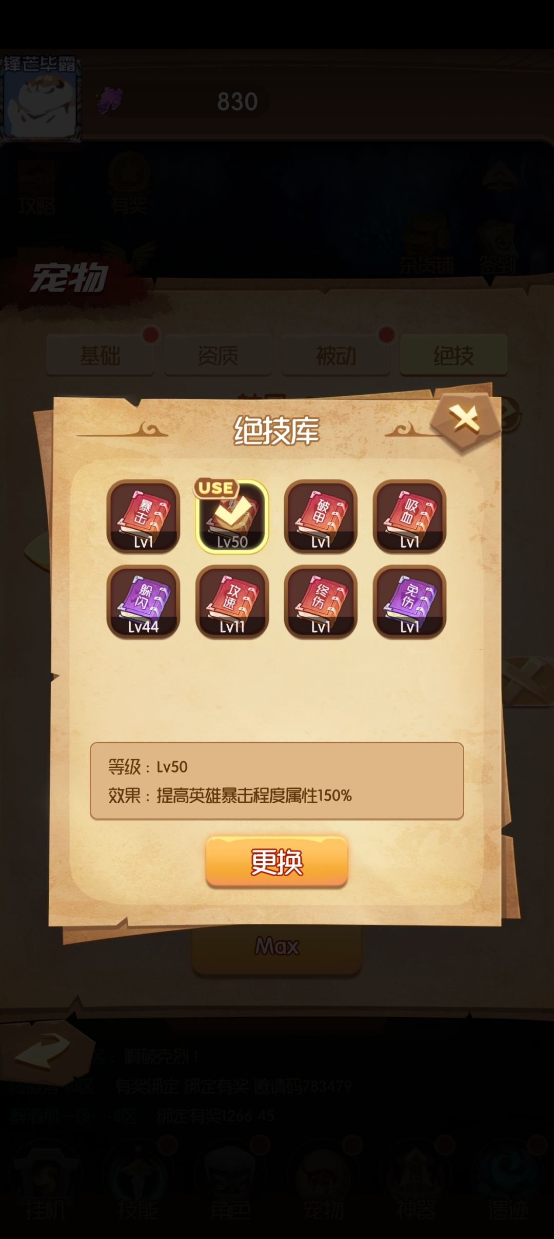 目前版本宠物除了绝技有用,绝技满级50级可以替换,其他的没啥用处。