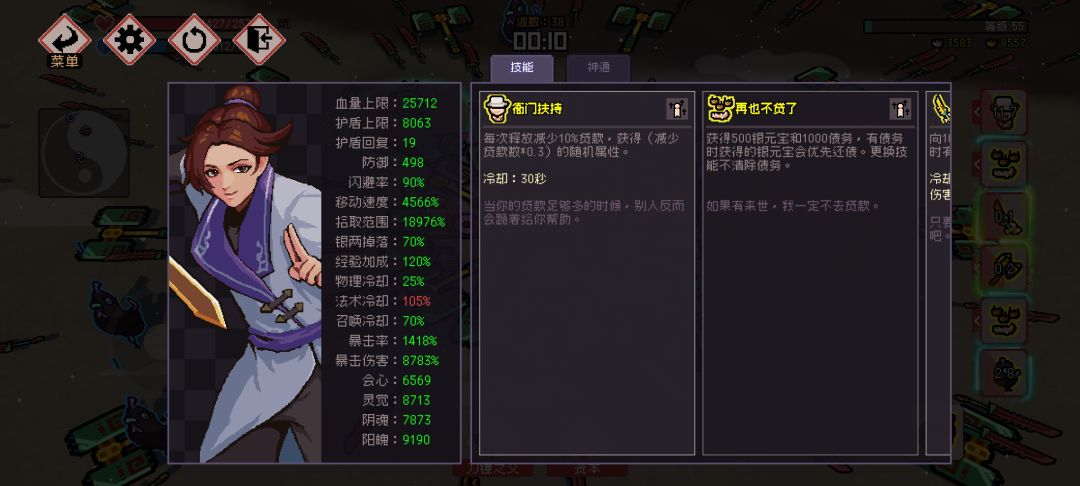 还一种是五级变成五级的贷款,给500加1000债务,这种情况,无脑刷债务到99999,然后用衙门扶持疯狂刷属性,然后想死都难,