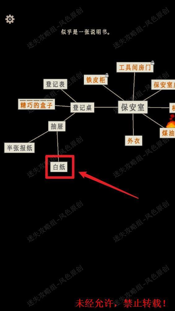 57.点击【登记桌】→【抽屉】→【白纸】,阅读【白纸】上的信息,获取线索提示。 57 57.1