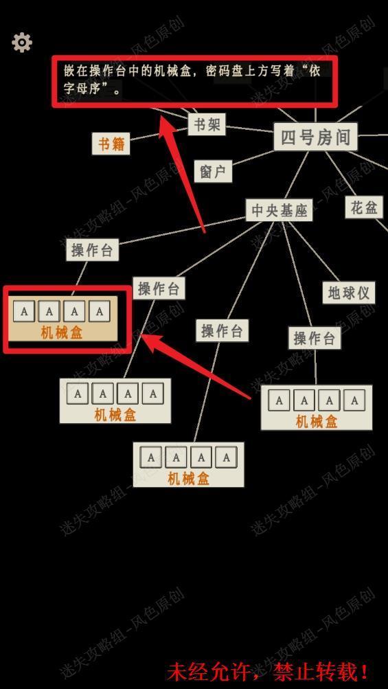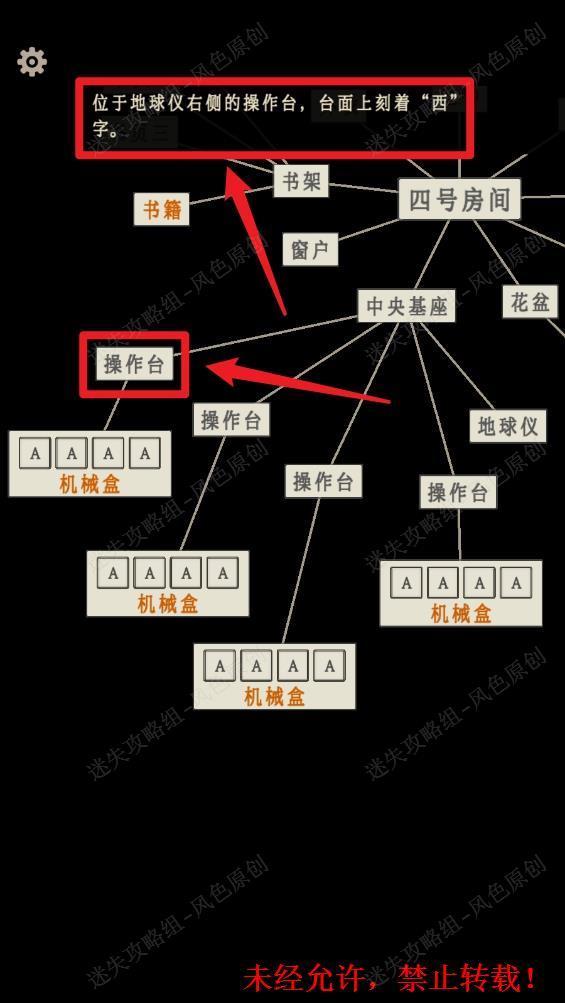 (注:场景中的词条可以拖动来进行移动,所以笔者的【操作盘】与【机械盒】的位置仅供参考,判断东西南北【操作盘】要看点击的文字提示。) 127