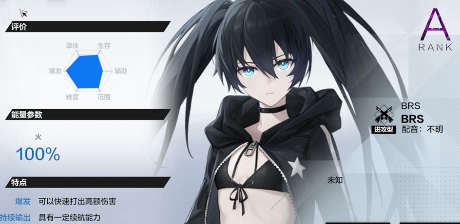 brs,火属性进攻型A级构造体.技能模组沿用了近来S级角色的分段大招且具有长演出的设计,再由核心提供多种触发方式扩展角色动作内容,这使得BRS有了较高的可玩性.