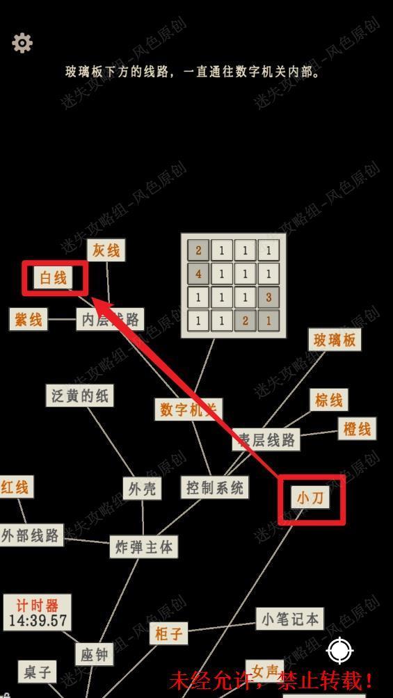 135.点击【数字机关】→【内层线路】,将【小刀】移动至【白线】上。 135