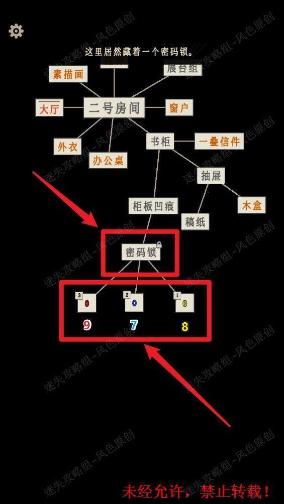 145.点击【书柜】→【柜板凹痕】的【密码锁】,按照红蓝黄的顺序输入密码978。 145