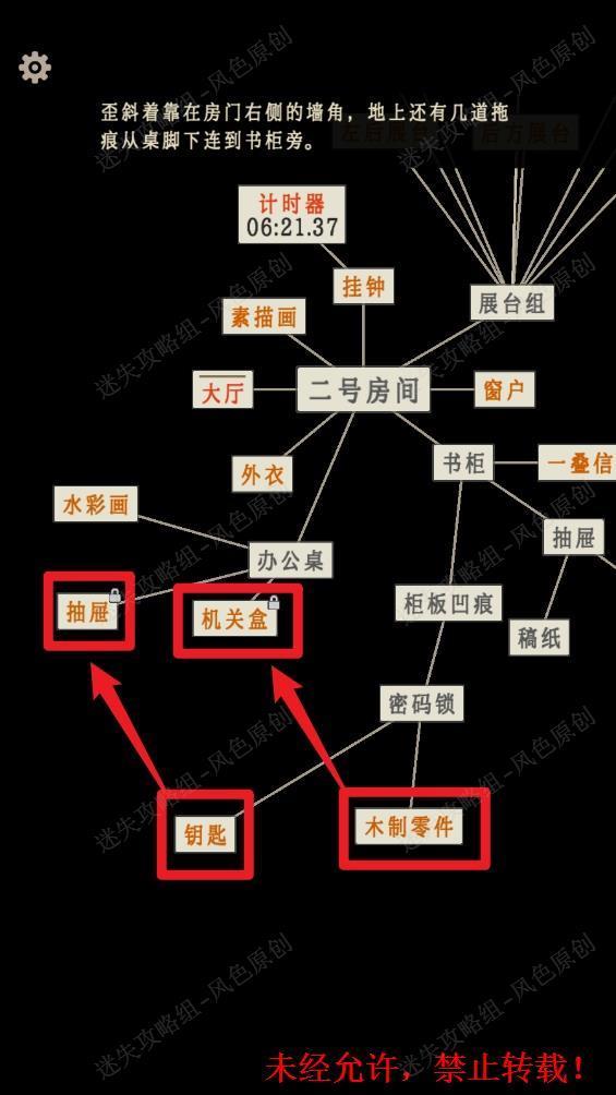 146.点击【办公桌】,触发出【机关盒】与【抽屉】,将【木质零件】放入【机关盒】中,【钥匙】放入【抽屉】中。 146