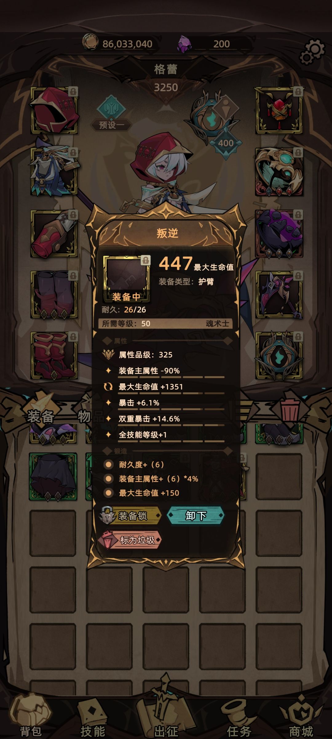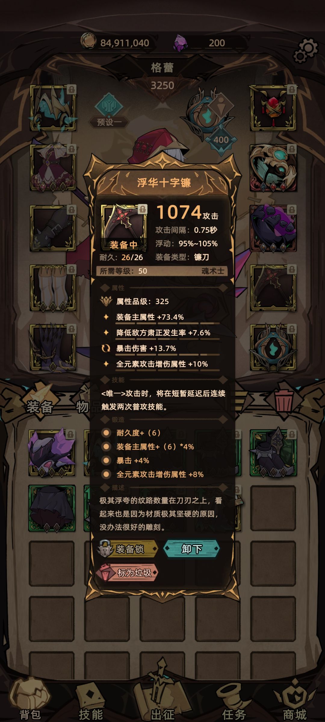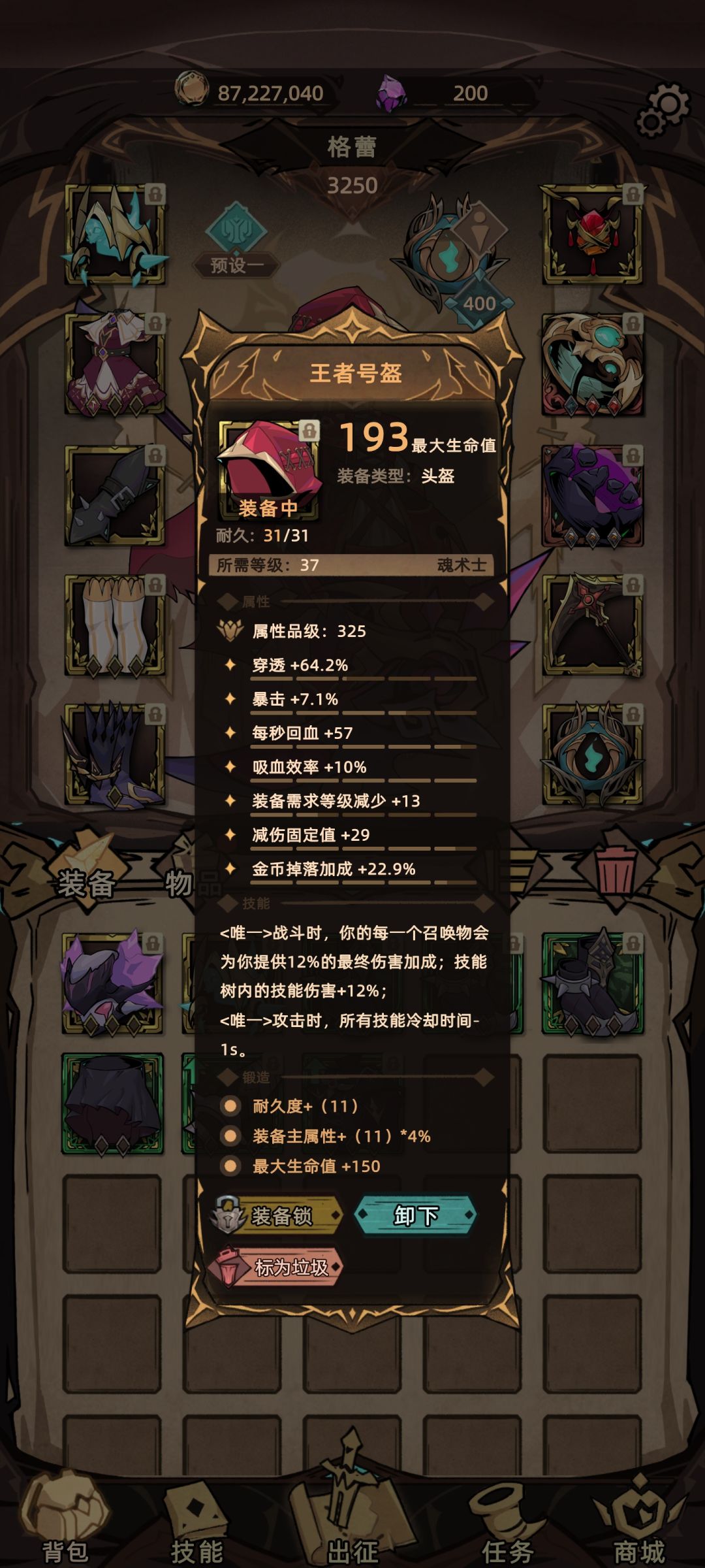 下个星期应该可以出套装的最后攻略 不过套装最终居然会对两个被动造成极大削弱真的很无语