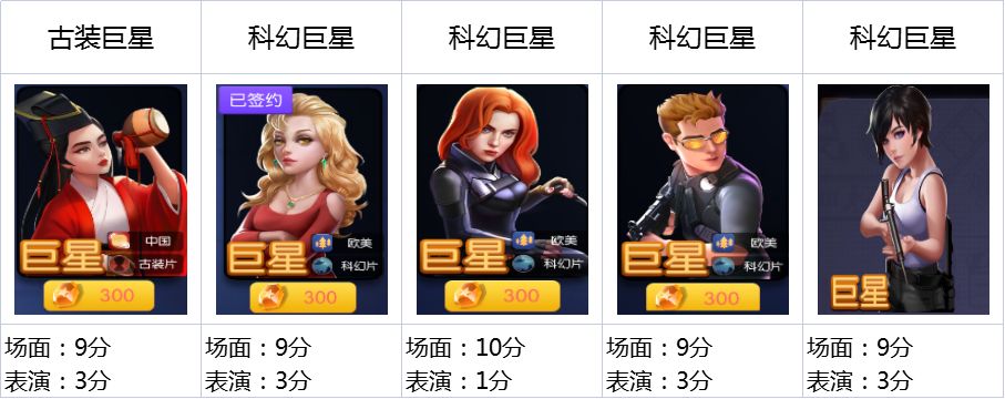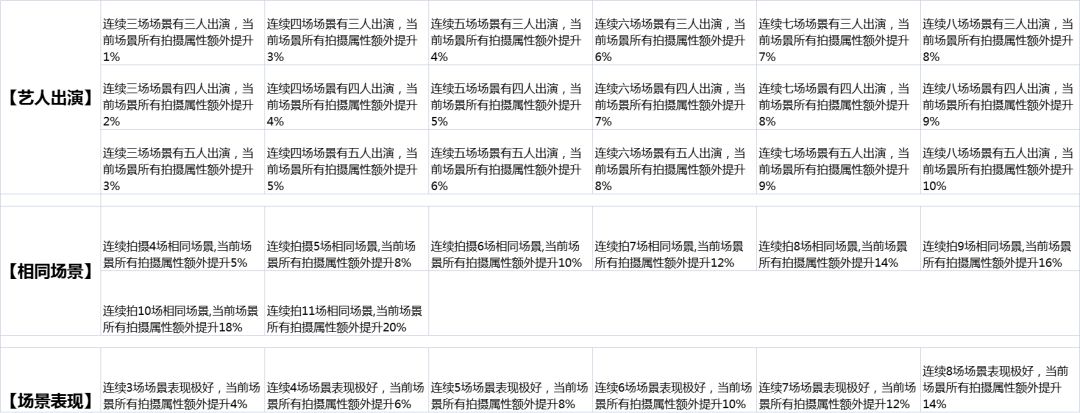 1.剧本星级提升(欧美或者男性)艺人拍摄电影时的“场面”属性,每颗星提升15%
