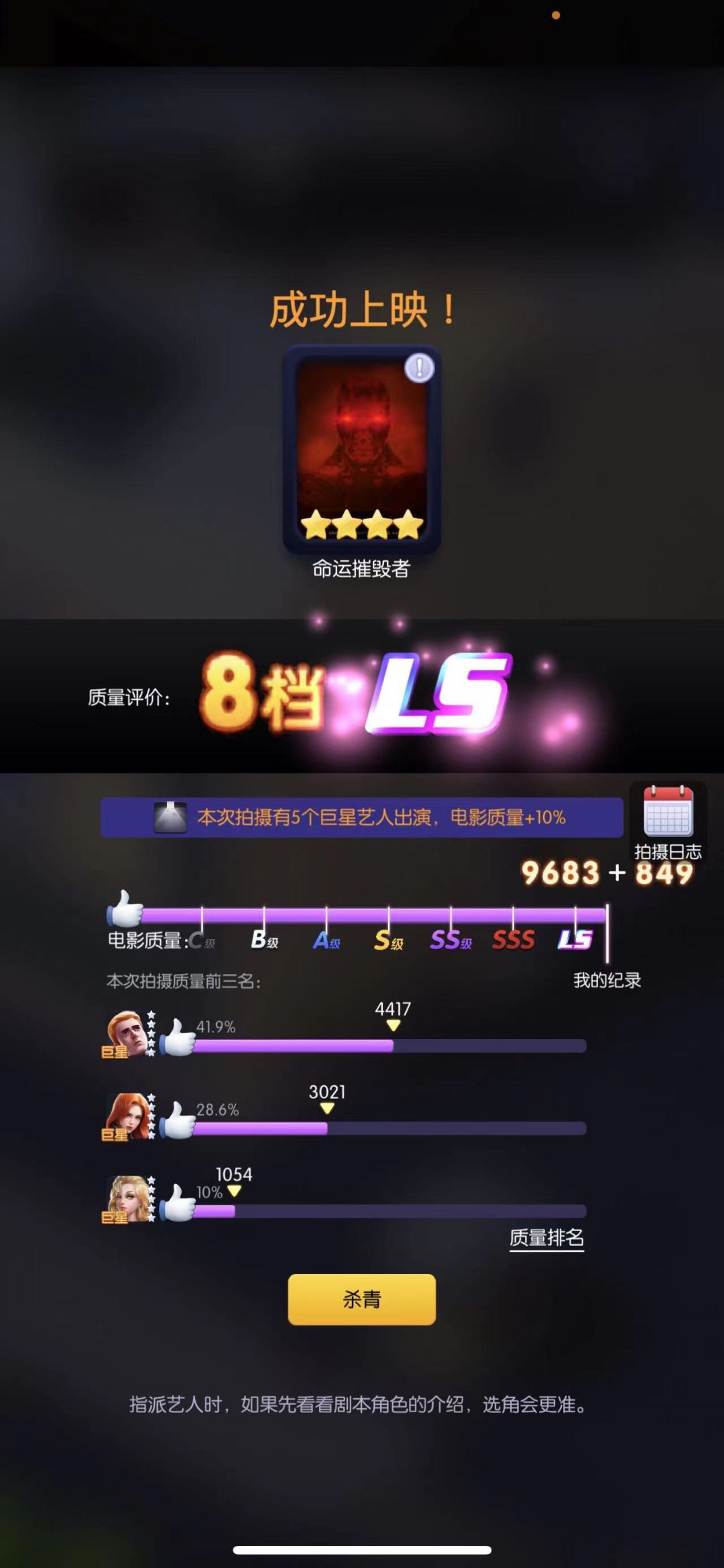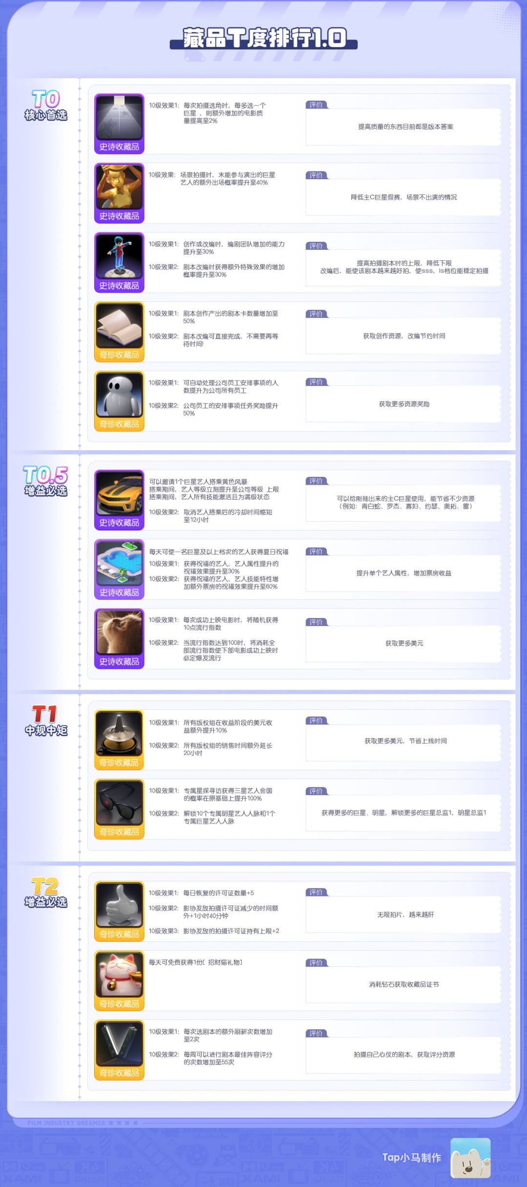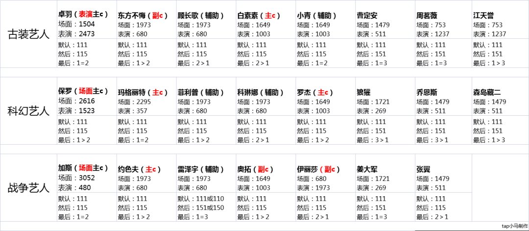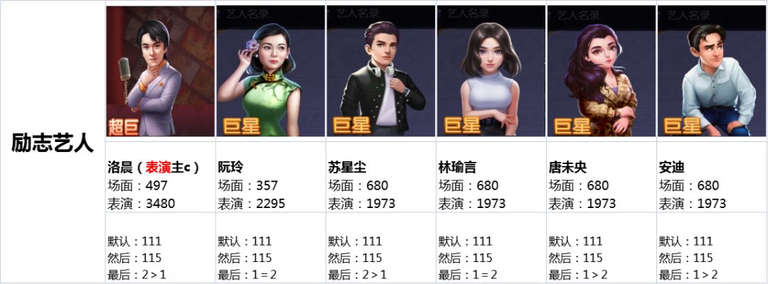 1.以下攻略主要说明了场面系艺人更适合拍摄场面本,表演系艺人更适合表演本,极个别超巨可以无视这种情况