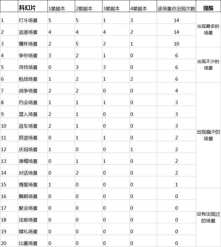 很多萌新刚入坑时,看见科幻剧本中众多的场景不知道应该如何选择,下图是个人把内测时已经出了的科幻剧本中...
