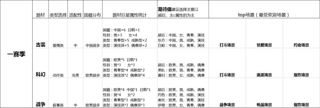 3.以下攻略说明了古装、科幻、战争三个系列中最受欢迎的场景是哪三个,对于后面如何选择4星、3星剧本,买黑卡剧本,改编剧本,巨星的技能适配都可以根据最受欢迎场景来选择!!!