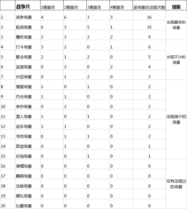 二.战争巨星定位、战争场景优先级、战争剧本场景概况...