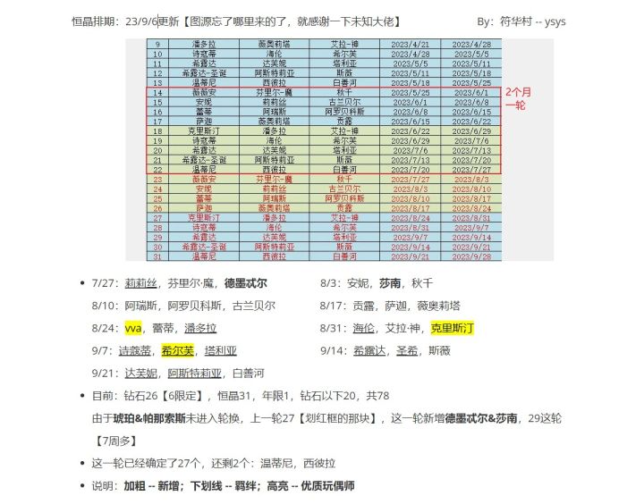 本期恒晶排期整理如下【9/6更新,迁移至新帖】