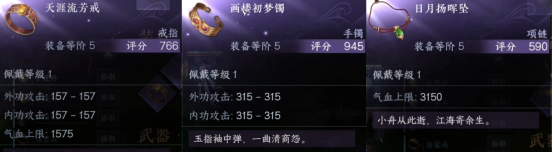 首饰中戒指+气血和攻击/手镯+攻击/项链+气血,捡到金色的话还会携带特殊词条,提升我们的实力。