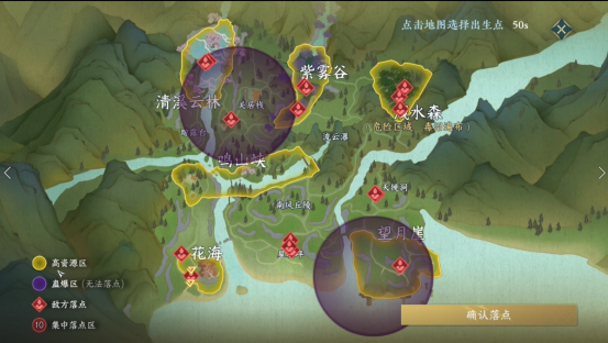 逐鹿仙原的战斗毒圈较快(2:30/1:48/1:38/1:18)每次刷新毒圈时间都会随之缩减,到第四次基本就是决赛圈了,能够移动的区域已经相当少了。