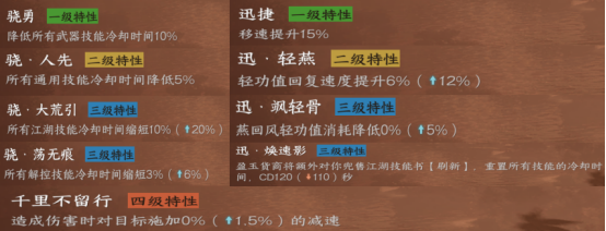 输出加点:优先骁勇系列-人先-大荒引-荡无痕-千里不留行-迅捷-轻燕-飒轻骨