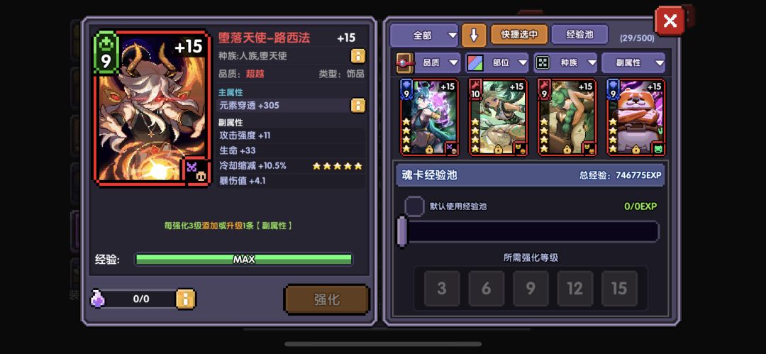起因是我之前为了叠新木游侠的攻速,挂了一张全冷却的滚兽魂卡。随后周年庆花费重金培养了一张极品冷却缩减”堕落天使-路西法“魂卡(图1),非常开心