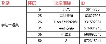 截止到8月31日23:59,本次福利活动回帖的有效楼层截止至56楼,起始楼层为2楼,开奖结果如下: