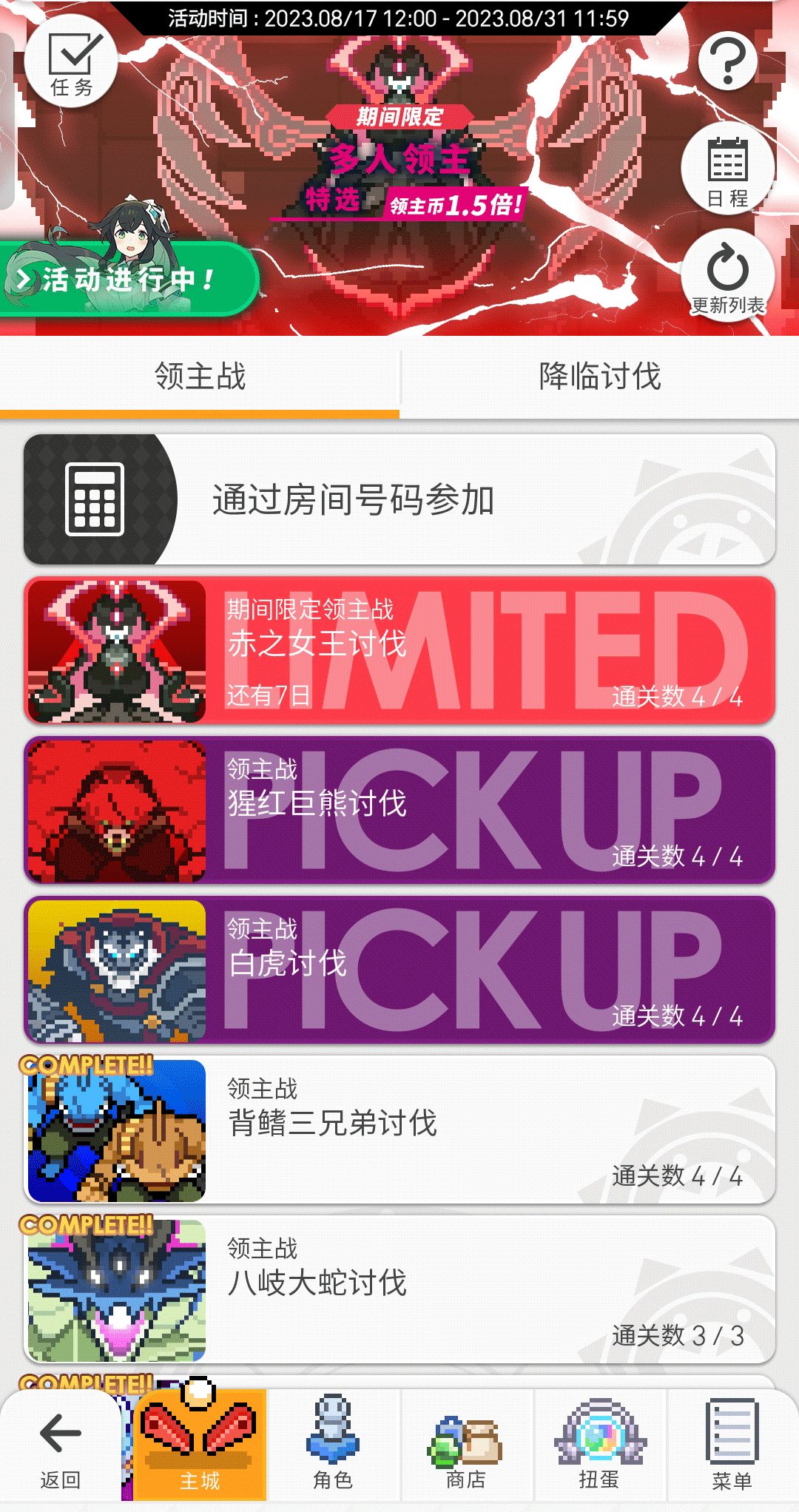c. 领主战材料商店:用领主战掉落的材料换装备、养成材料;
