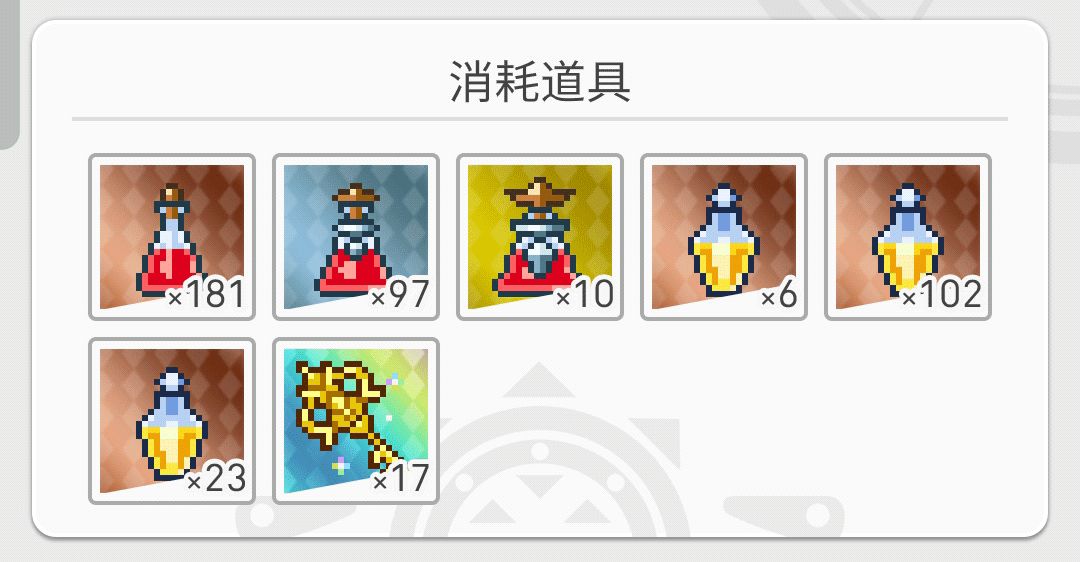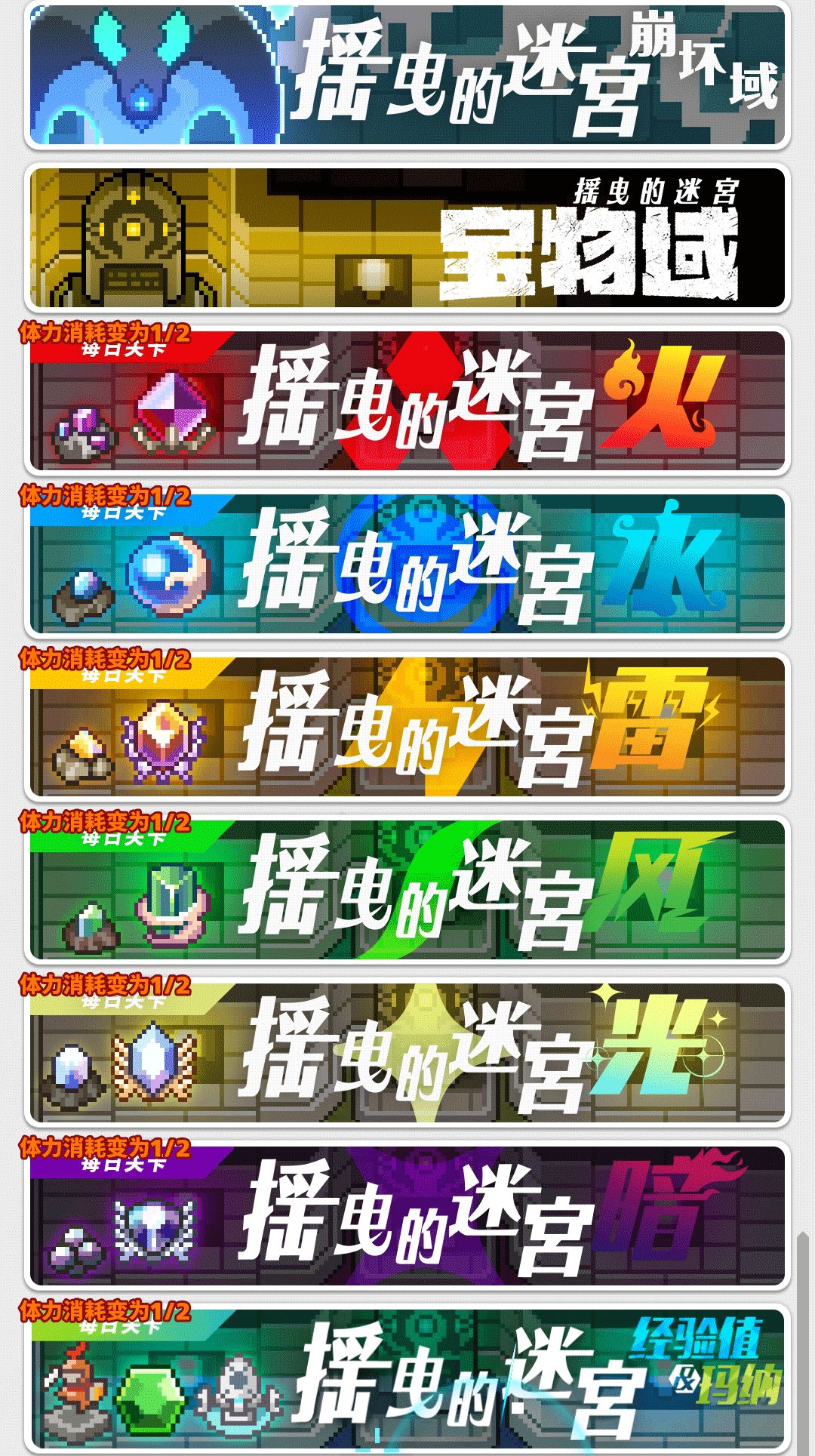 游戏内有六种属性:风、雷、水、火,光、暗。各属性所需材料不同,材料品质和数量相同,而梦境纹章(星星)是全属性通用。