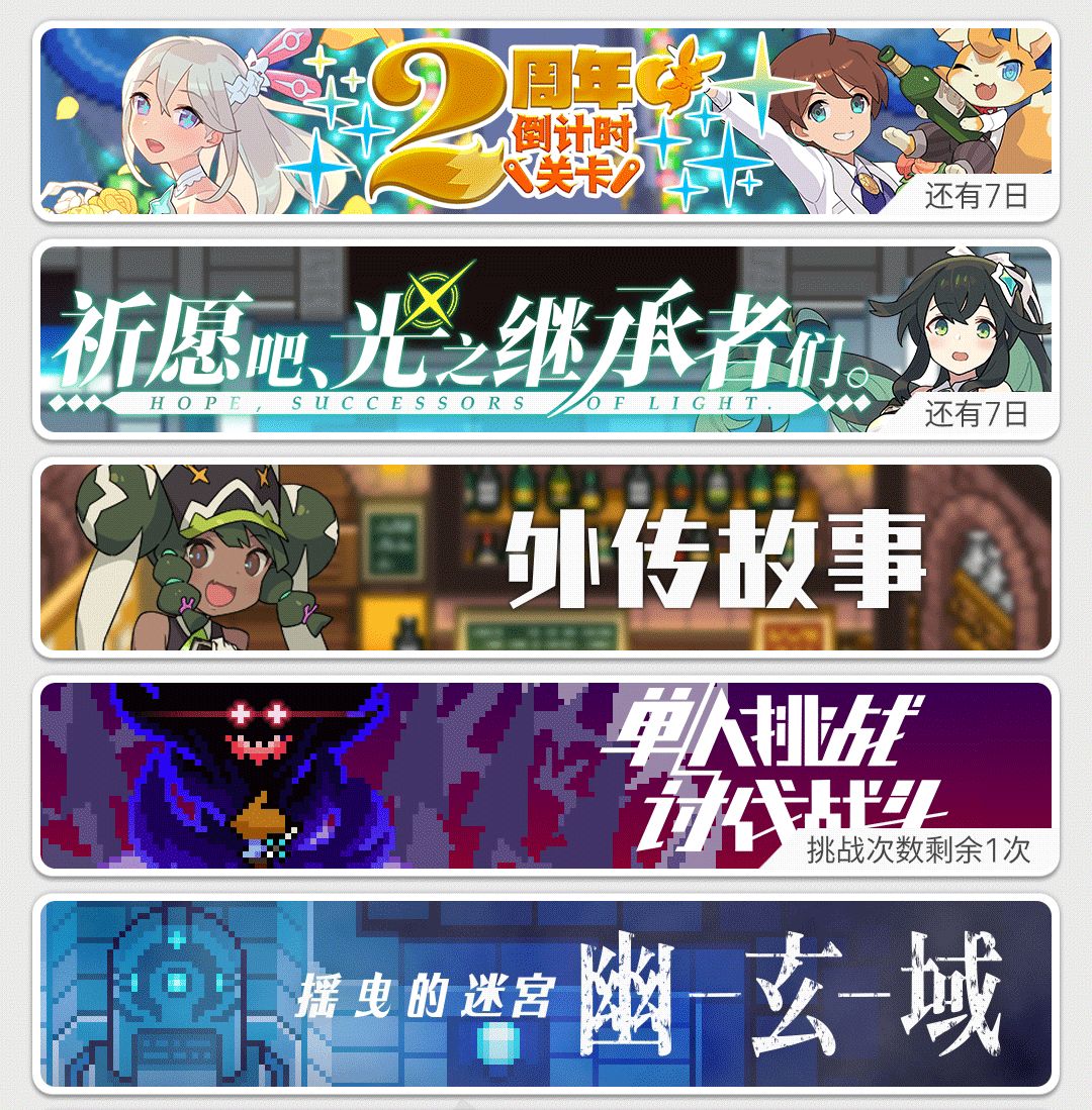 1)首先是养成时间:有小号时,可以让小号开车给大号蹭,这样可以更快完成某些活动任务,比如100/150次刷图。对于一些无限池活动,比如本期的 [祈愿吧、光之继承者们] ,会开放 ABCDE 五个扭蛋箱,其中E池为无限池,在拿完奖励后可以刷新奖励再次抽取。