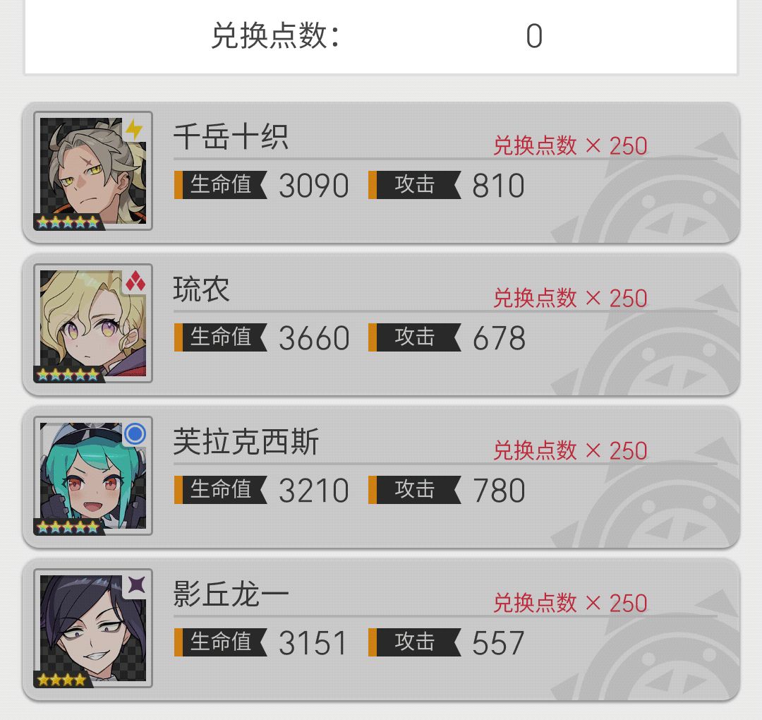 所有卡池均为250抽大保底(日服游戏通常称为“井”),无小保底;每抽一次获得一个抽卡点数,达到250点后可以兑换指定角色。兑换按钮在卡池左上角。