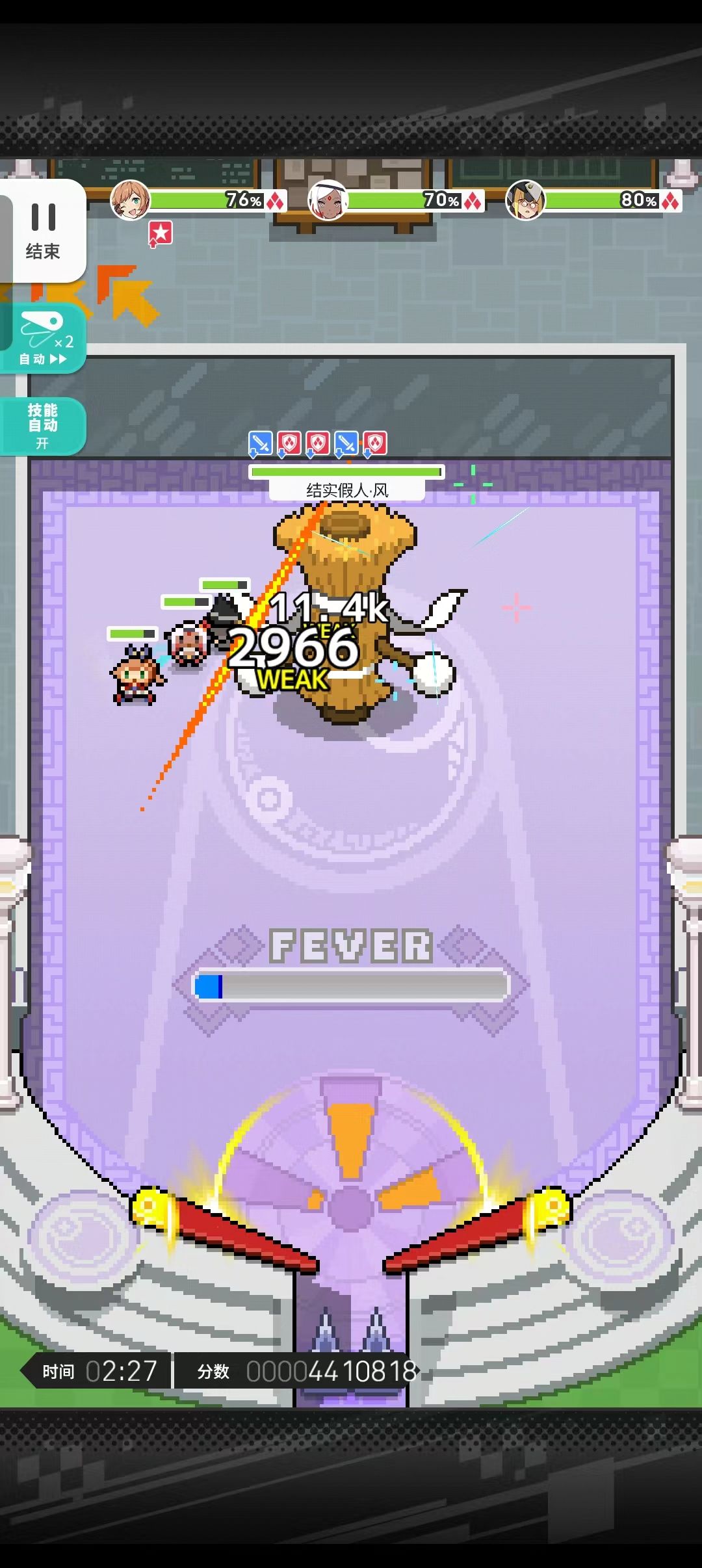 b. 浮游则是将角色原有的重力影响去除,因此撞击后会直线回弹,而不是抛物线下落;同时,也不受BOSS的力场影响,可以自由弹射。由于没有重力,弹射速度始终恒定,保证了直击的效率。但对于小怪或障碍多的图,单纯的浮游效果并不会,因为系统会自动锁定近的目标,而大部分副本都是有限击杀BOSS而通关,因此,浮游时常与贯通一起使用。