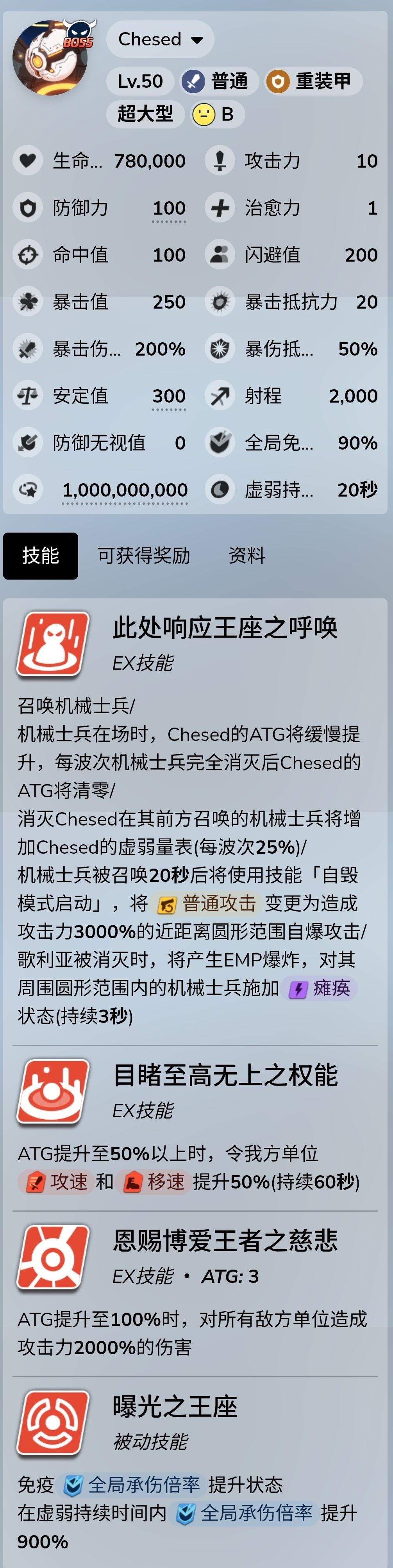 球属于机制boss,因为被动提供了常态90%的免伤,所以血量只有78w。将boss打入虚弱状态,可以让boss失去免伤(一般称为开壳)。球有着10亿的虚弱量表,正常肯定打不满,所以我们要用机制来打败机制。