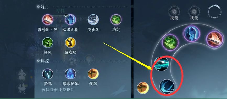 技能更换:点击图中小圆圈,就会出现更换技能的面板。