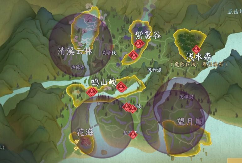 物资购买:点开右上角的大地图,上面的黄色小三角就是游戏里面盈玉铺的位置,大家可以标点找到盈玉铺,然后兑换物资。