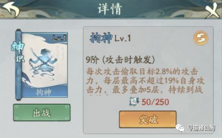 No.5 拘神品级:开辟技能:每次攻击偷取目标2.8%的攻击力,每层最高不超过19%自身攻击力,最多叠加5层,持续到战斗结束;适用流派:百搭