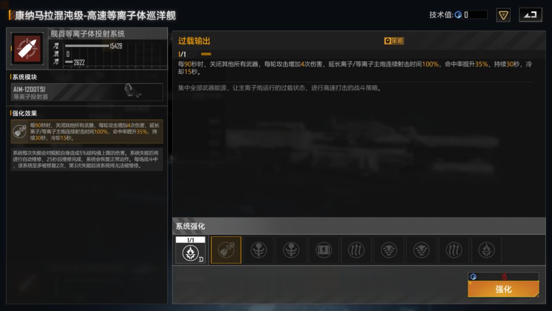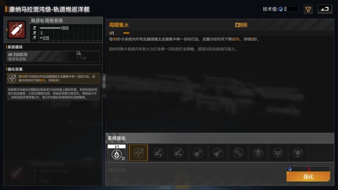 加点方面一般选择双命中、双增伤、单持续时间缩减、单冷却时间缩减。策略技能个人感觉收益不明显,往往前排都是巡洋舰及巡洋舰以下,这种情况并没有太多时间打持续输出。