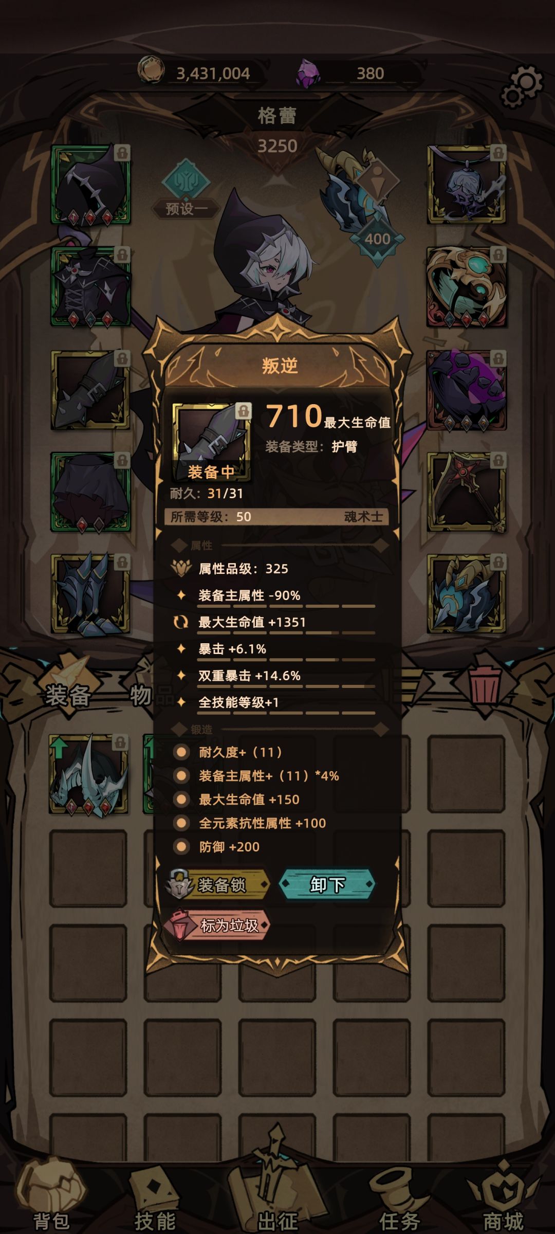 词条优先级:全技能>孔>主属性>爆伤/肃正/穿透 最后的属性是你需要什么就补什么