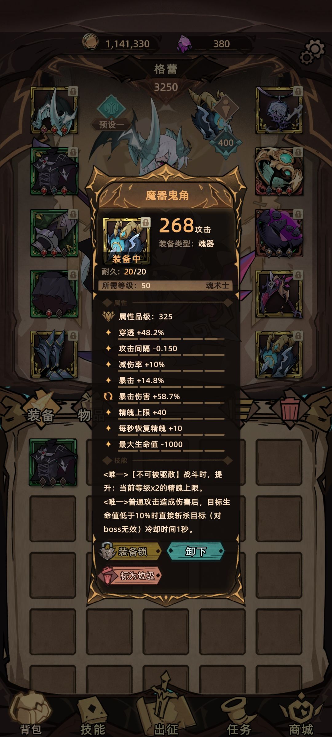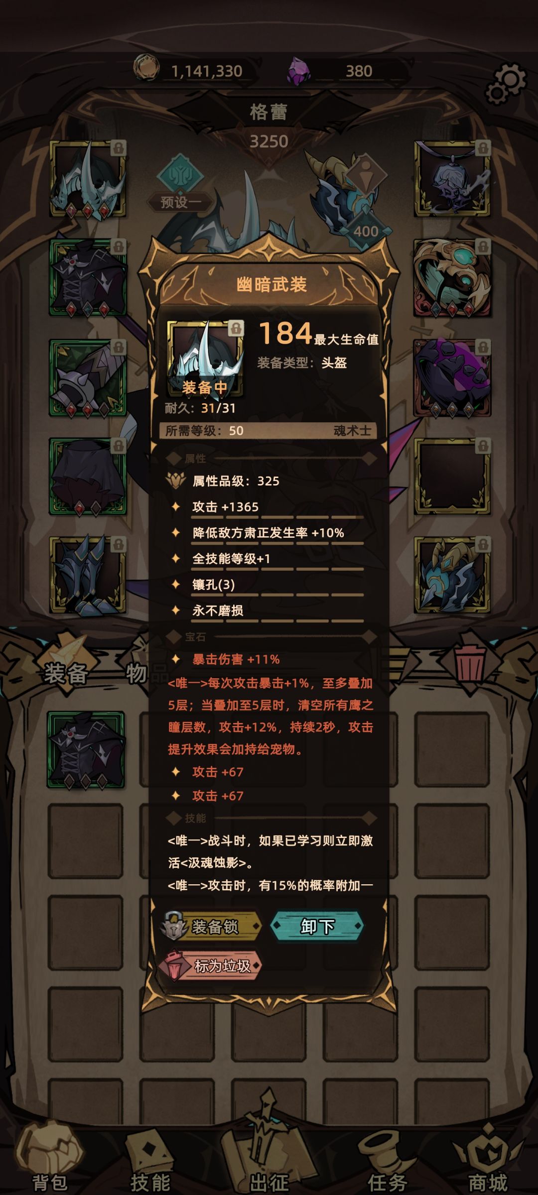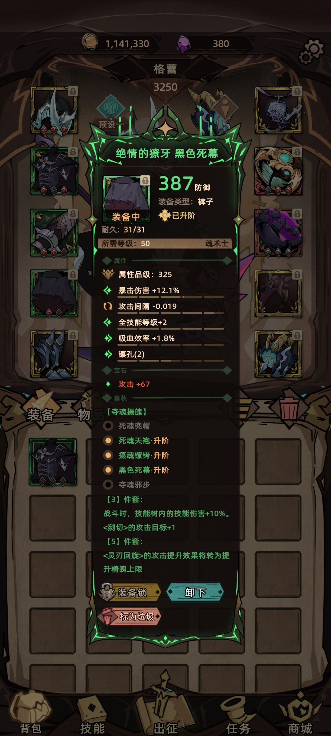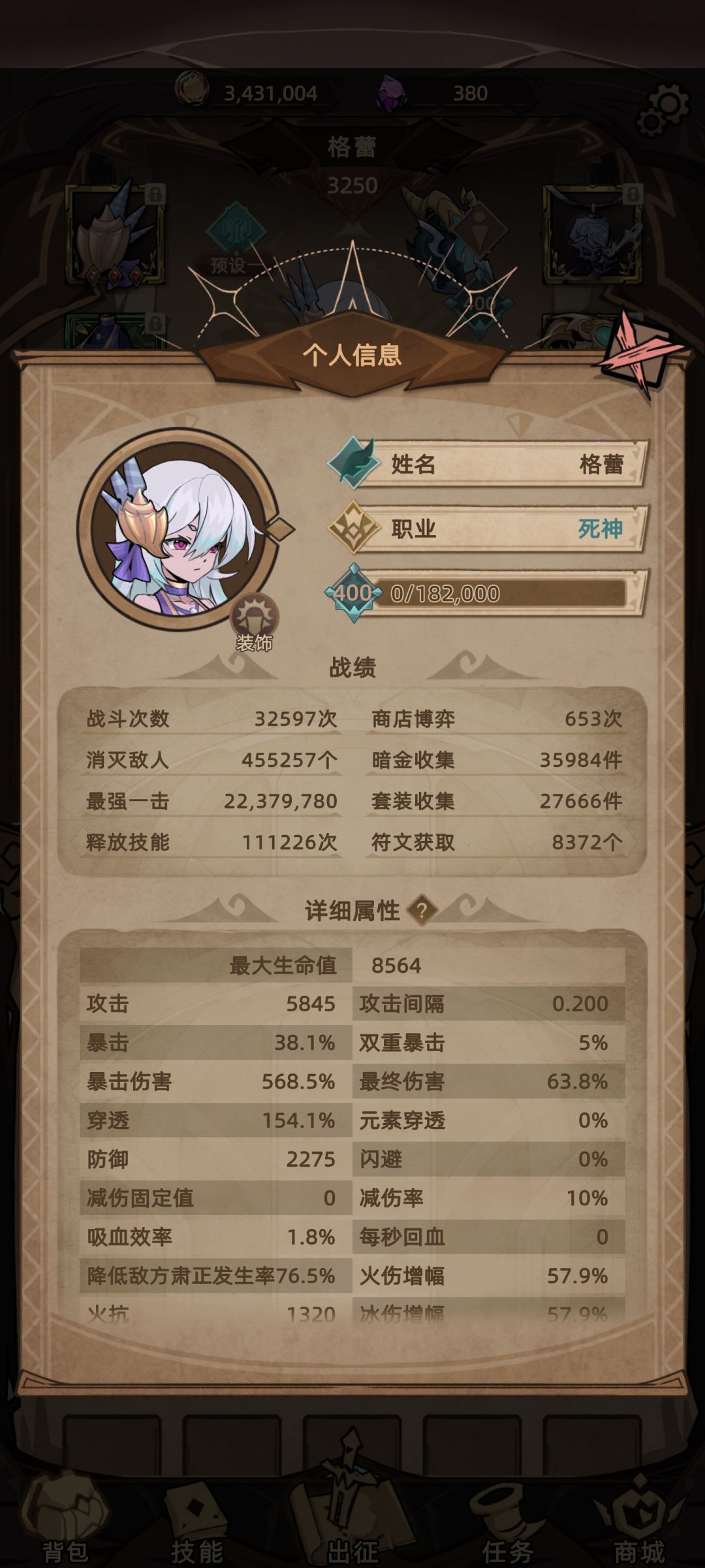 还有个人建议 套装装备中最好选择一件带有穿透词条 最好保障100%穿透 死神普攻连带的技能并非真伤 是需要穿透的 但是那几个技能其实对伤害影响不大