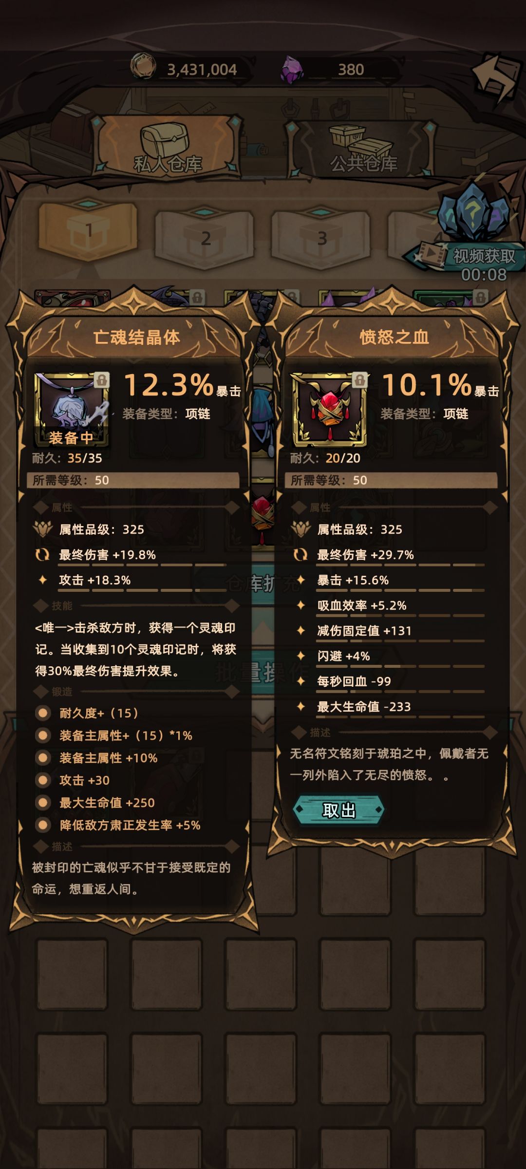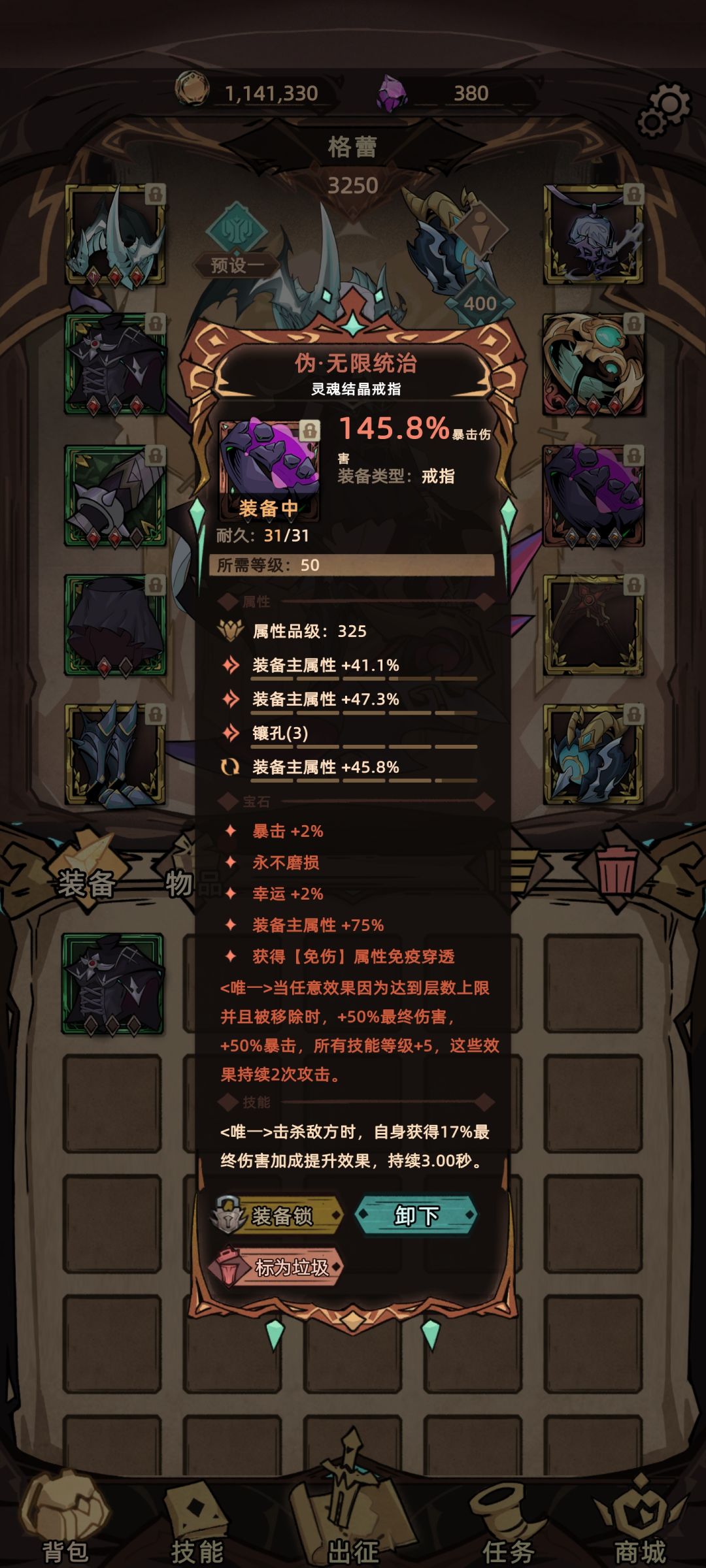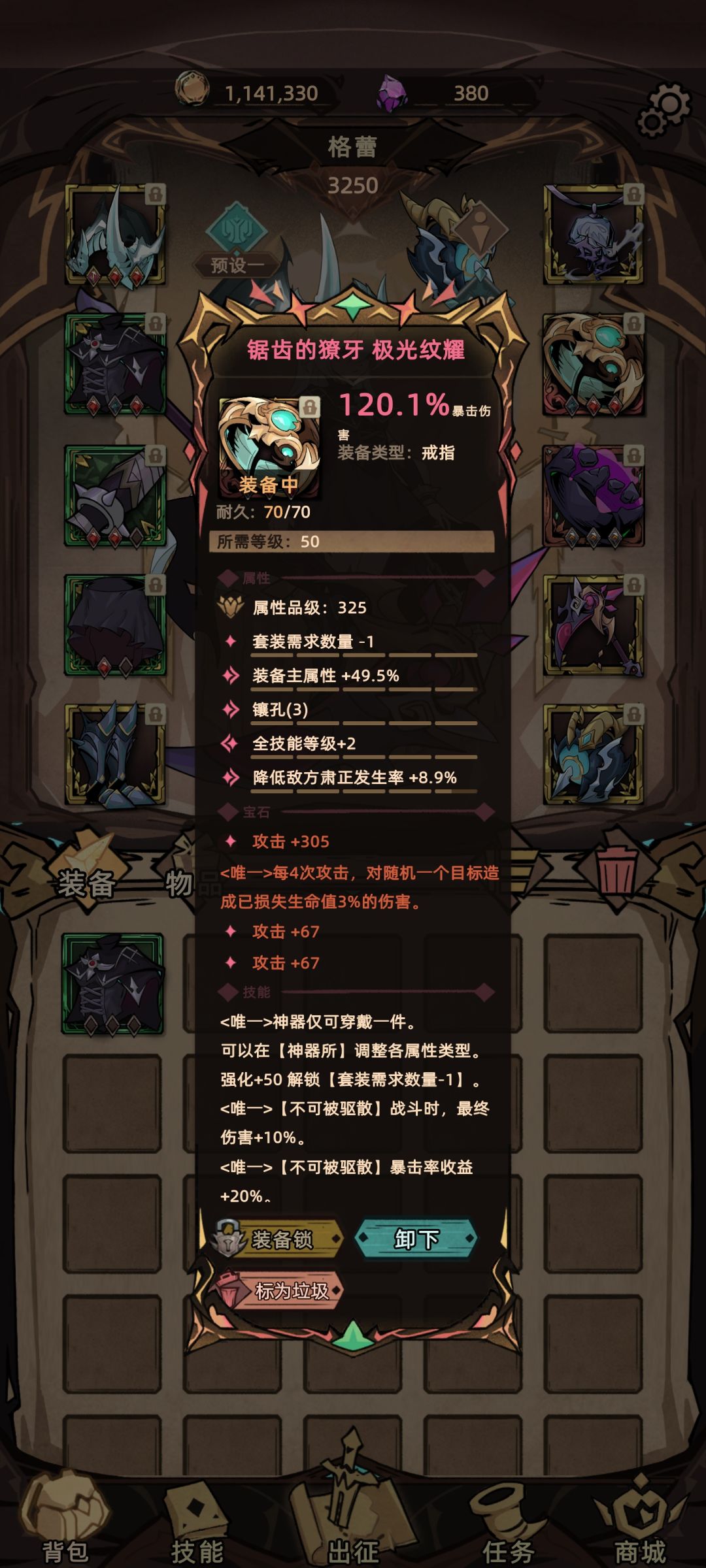 -1戒指可能需要补暴击 可以用这件装备 增加30%的终伤 初始既有25%的暴击