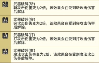 根据自身的攻击类别武器破碎效果的种类发生变化(斩/打/突/魔)