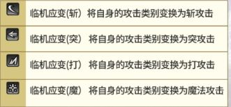 ♦️战斗开始时根据前卫最多的武器种类(自身除外)对自身附加临机应变(永续)