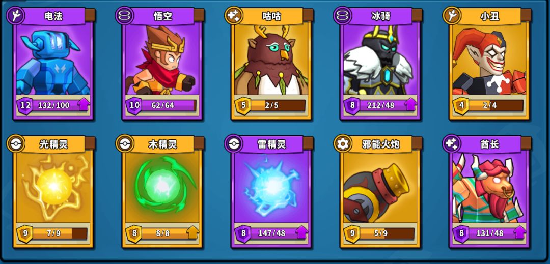 B组阵容推荐:电法、猴子、咕咕、冰骑、小丑、牛头、邪能火炮、光精灵、木精灵、雷精灵