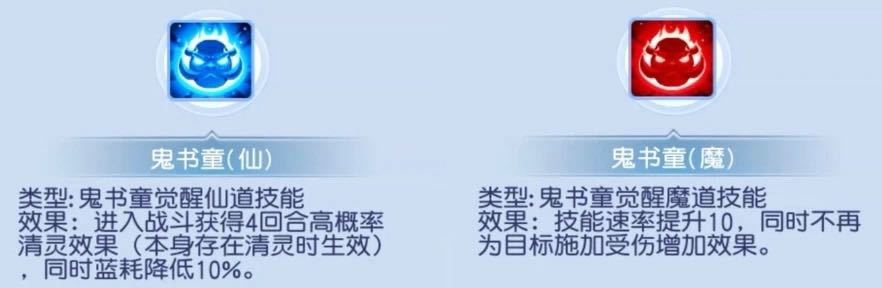 魔道也就是选择携带鬼魂的鬼书童,技能速率提升,节约大量的属性点,同时增强自己,而且为目标施加状态也不再有受伤增加的效果,可以说是双赢的局面。