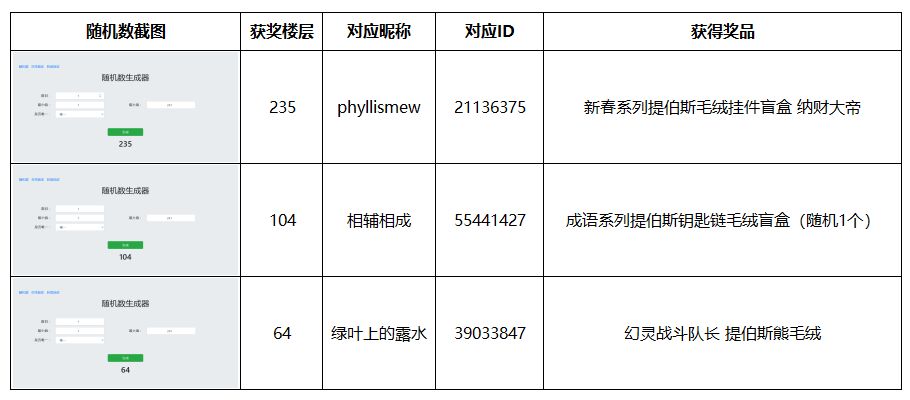 活动截至时有效楼层为241楼,经随机数抽取获取获奖楼层和名单如下: