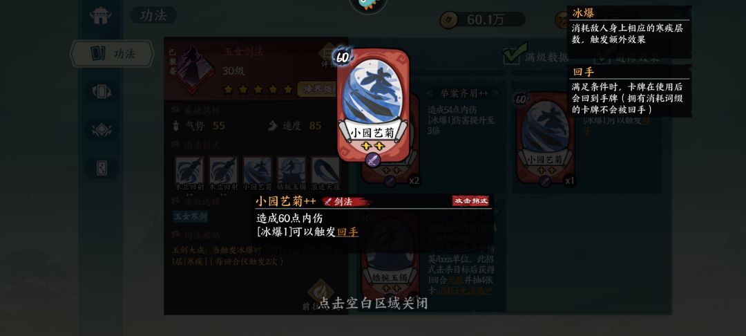 最重要的是,寒剑推图是真的快。刷刷刷一堆技能配秒杀,比什么北冥快多了。快剑还要叠3回合臂力,寒剑小园上手直接就开刮了。