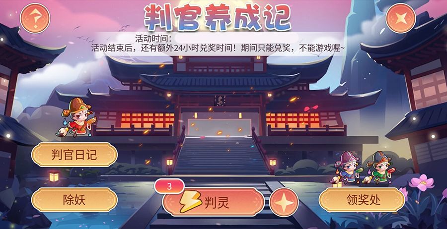 1、本活动分为四部分:判灵、除妖、判官日记、领奖处;