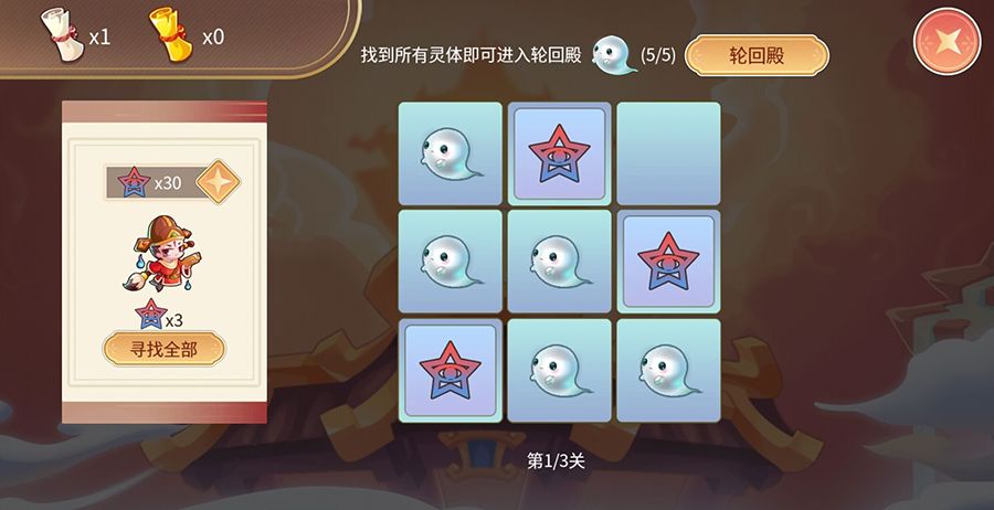 在判灵环节,我们共有3关需要通过。每关找到一定数量的灵体即可进入轮回殿。